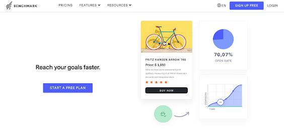 تقدم خدمة التسويق Benchmark Email بعض الأدوات القوية جدا، نذكر منها قوالب البريد الإلكتروني عالية الاحتراف وإحصائيات المشتركين ونماذج الاشتراك الجذابة بالإضافة إلى أداة السحب والإفلات السهلة جدا.